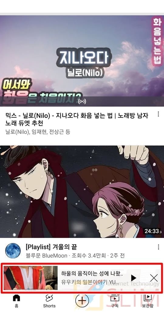 5. 유튜브 화면이 가로모드로 변경됩니다.