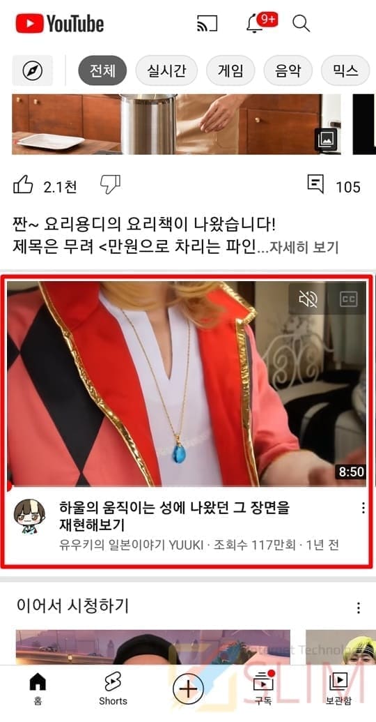 7. 다시 유튜브 화면이 세로모드로 변경됩니다.