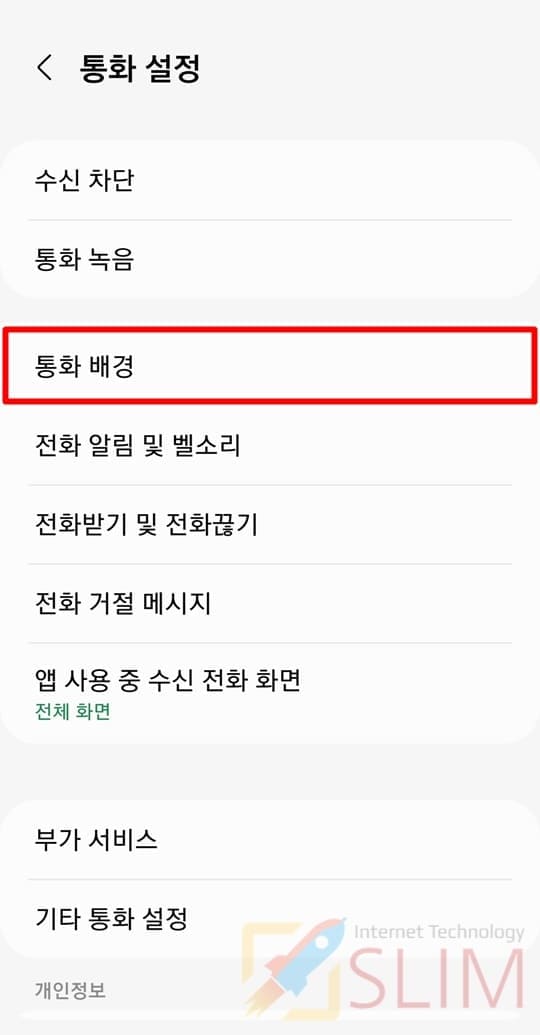 1. 전화 앱 > 더보기 > 설정 > 통화배경을 클릭합니다.