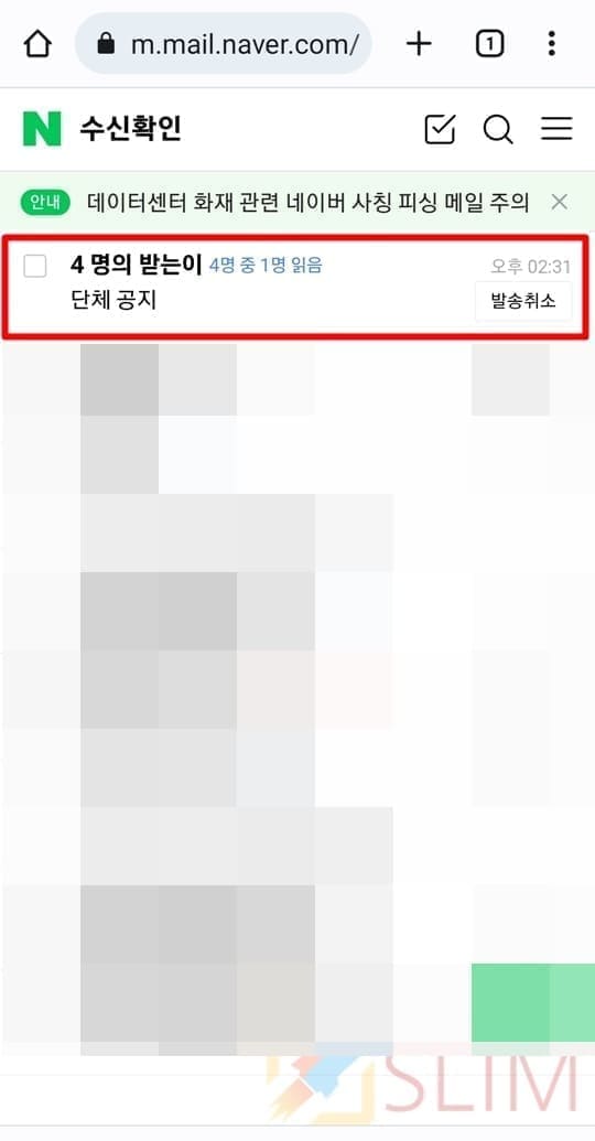 2. 모바일 - 단체 메일을 보낸 경우 수신 확인 방법