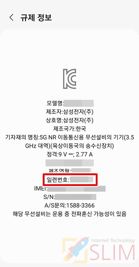 4. 스마트폰 일련번호 숫자 7자리를 확인합니다.