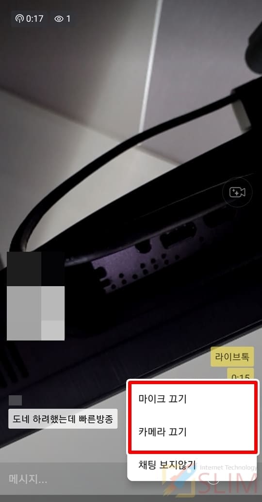 만약 라이브톡을 완전히 종료하는 것이 아니라 마이크나 카메라를 끄고 싶으시다면 아래 방법을 이용해주시길 바랍니다.