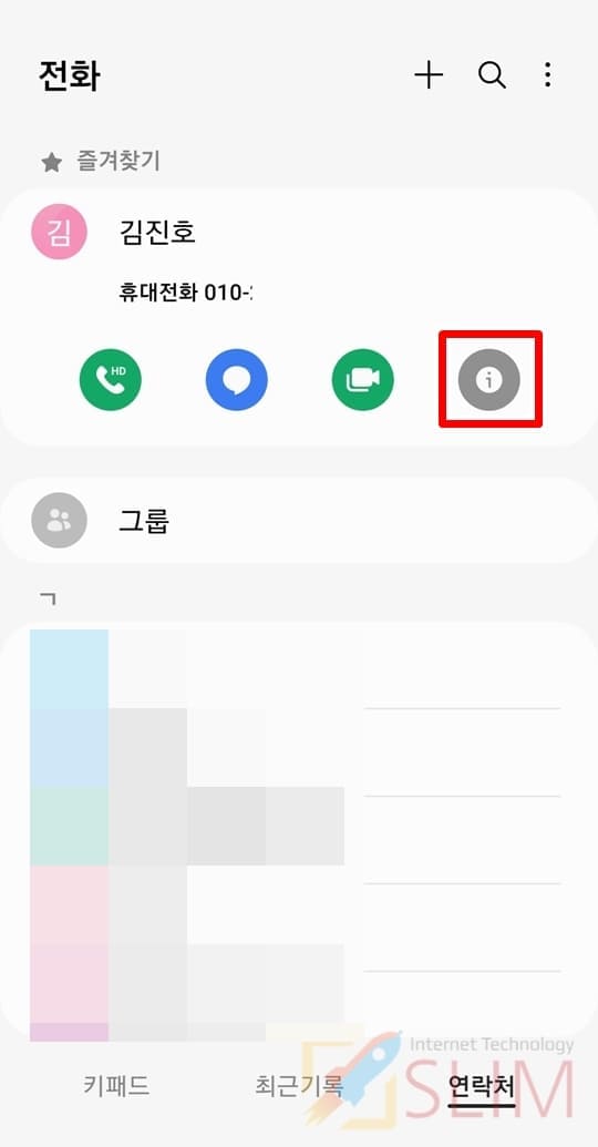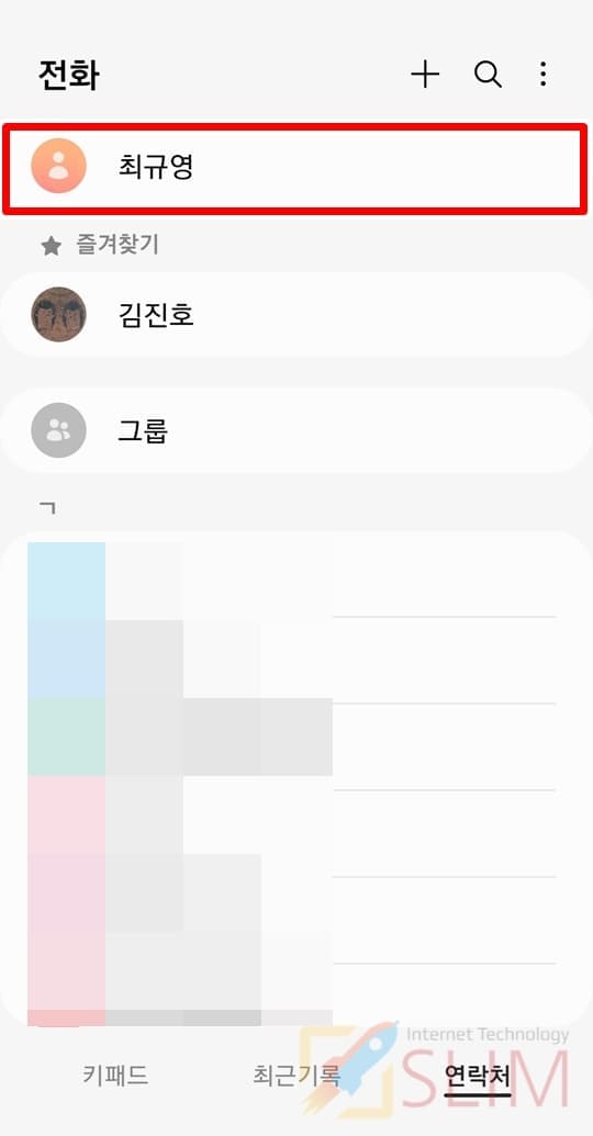 1. 전화 앱 > 연락처로 들어갑니다.