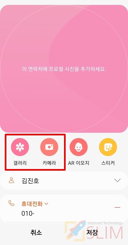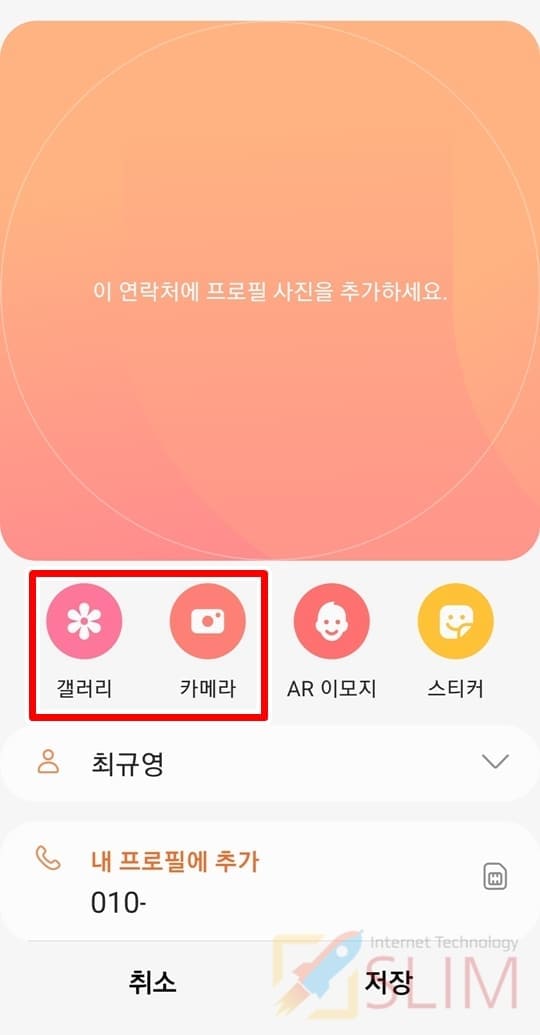 4. 갤러리나 카메라를 클릭합니다.