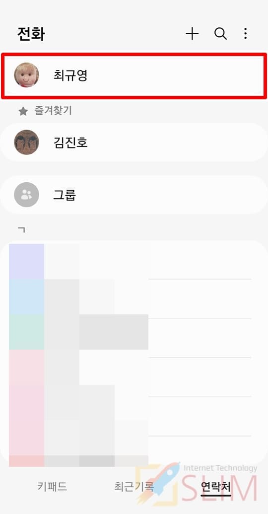 1. 전화 앱 > 연락처에서 사진을 지우고 싶은 연락처를 클릭합니다.