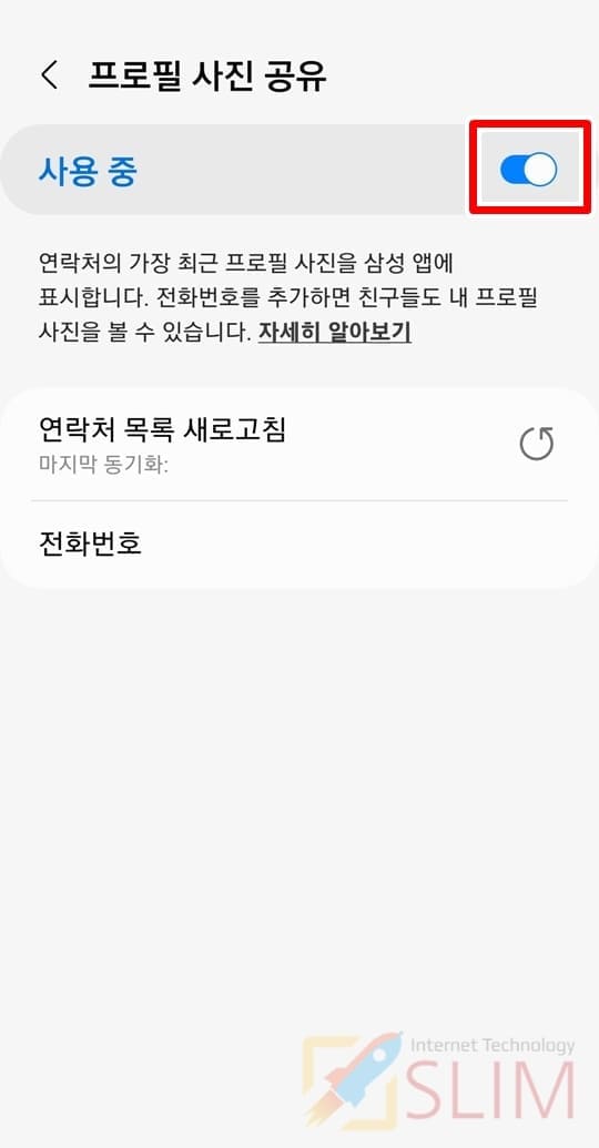 만약 나의 갤럭시 연락처 사진이 마음에 들지 않거나, 사생활 노출이 우려된다면 넣어둔 사진을 삭제하는 것이 좋습니다. 참고로 나의 프로필 사진이 상대방들에게 더이상 공유 업데이트되지 않게 하고 싶다면 위 방법에서 알아본 프로필공유 기능을 비활성화해주시면 됩니다.