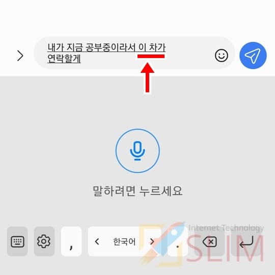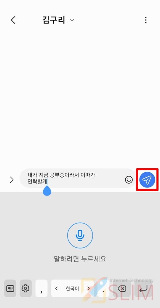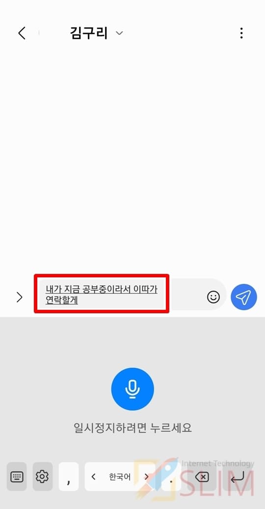 6. 내가 말한대로 음성 인식된 메시지가 자동 기입됩니다.
