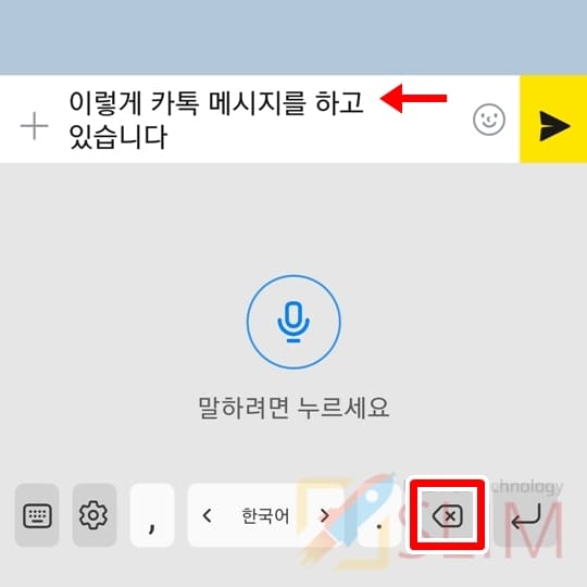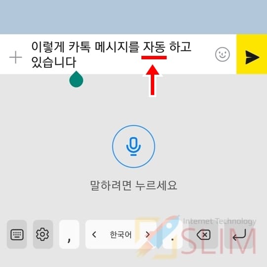 3. 보내고 싶은 메시지를 음성으로 말하면 자동 입력됩니다.