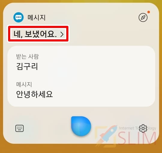 3. 빅스비가 명령 확인을 위해 받는사람, 메시지를 표시한 것을 확인합니다.