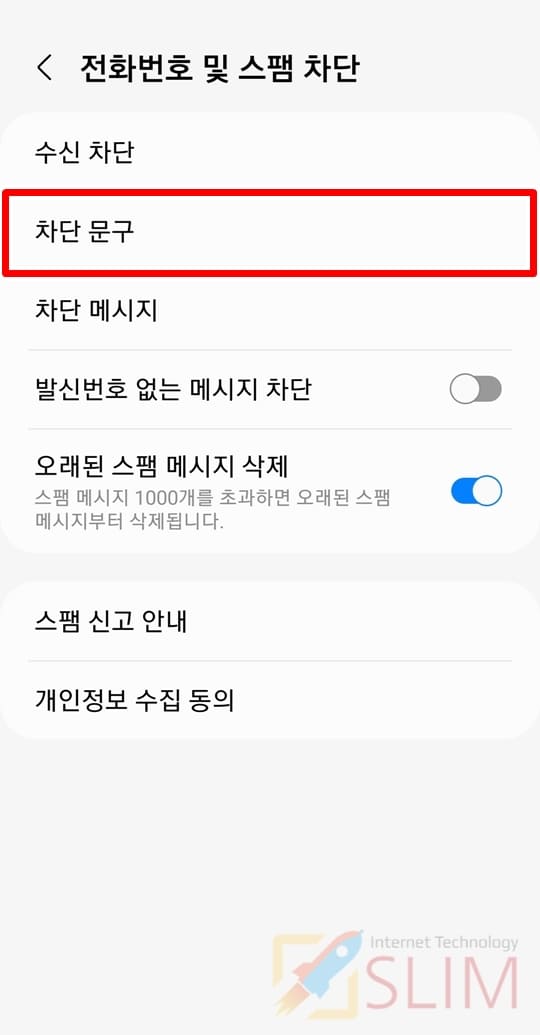 4. 전화번호 및 스팸 차단을 누릅니다.