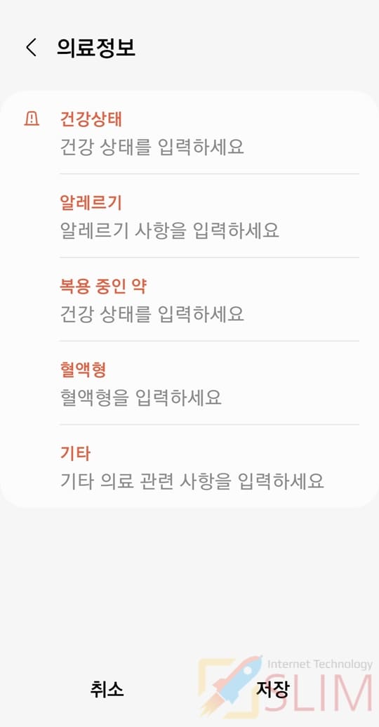 5. 나의 긴급 의료 정보를 기입하고 저장을 누릅니다.