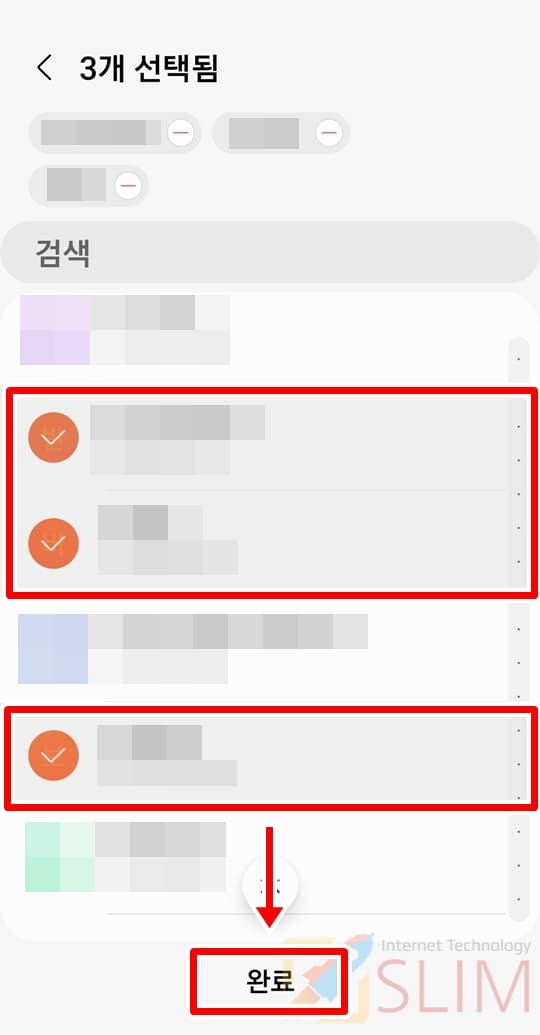 4. 갤럭시에 저장된 연락처 목록에서 긴급연락처로 추가하고 싶은 사람을 모두 눌러서 체크합니다.