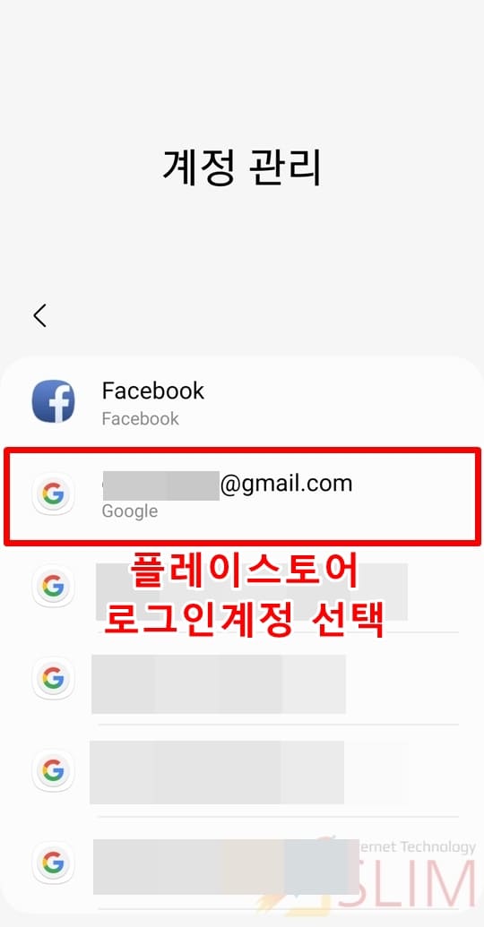4. 구글 플레이 스토어에 로그인되어 있는 계정을 선택합니다.