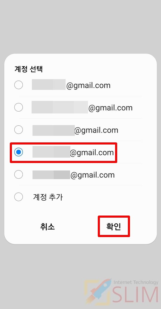 4. 사용하고 싶은 다른 구글 계정을 체크하고 확인을 누릅니다.