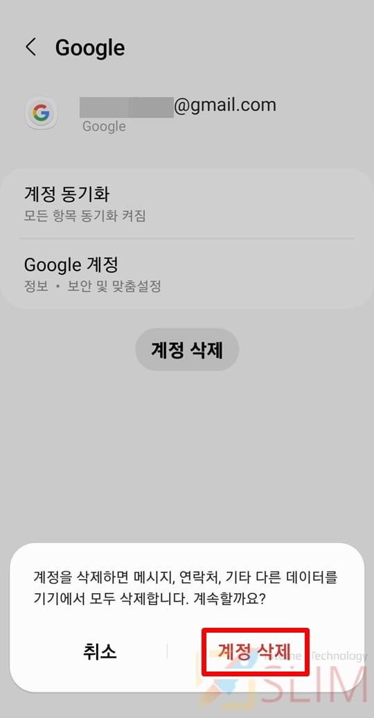 6. 팝업창에서 다시 계정 삭제를 클릭합니다.