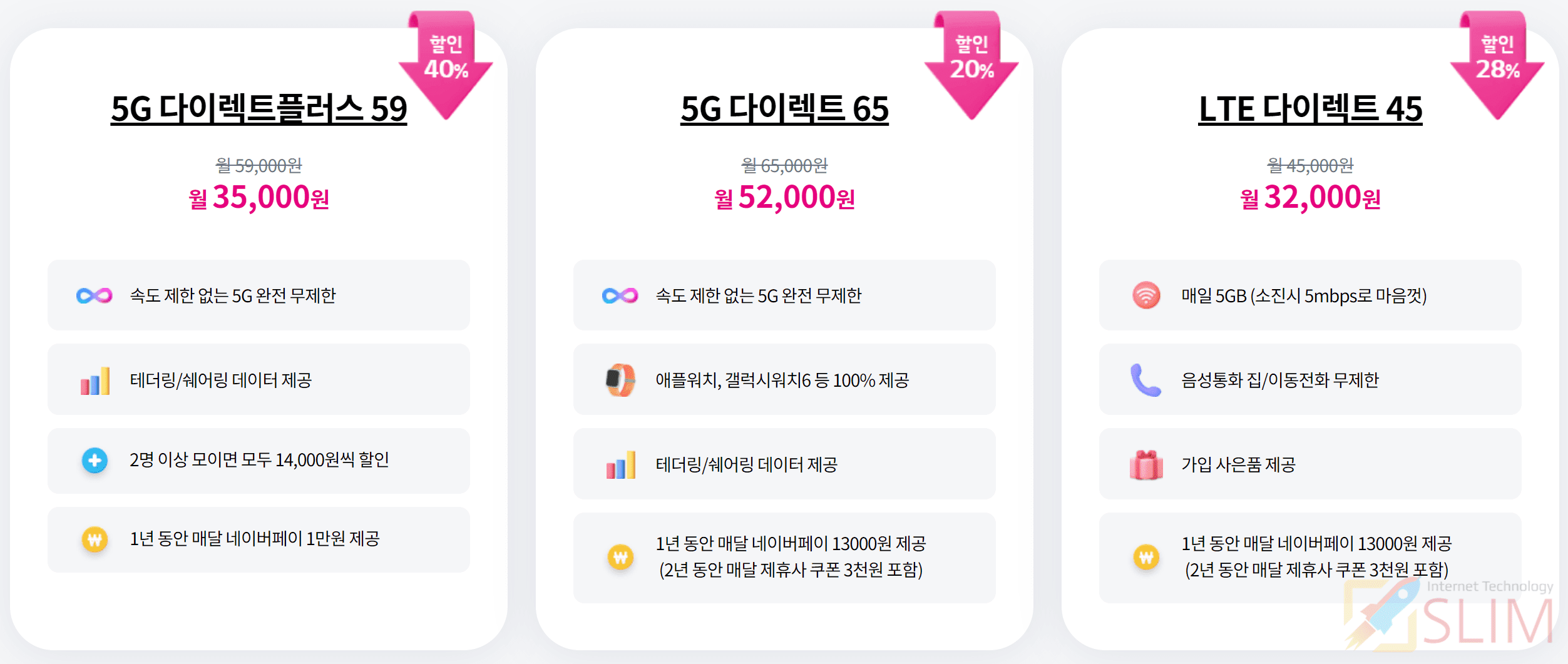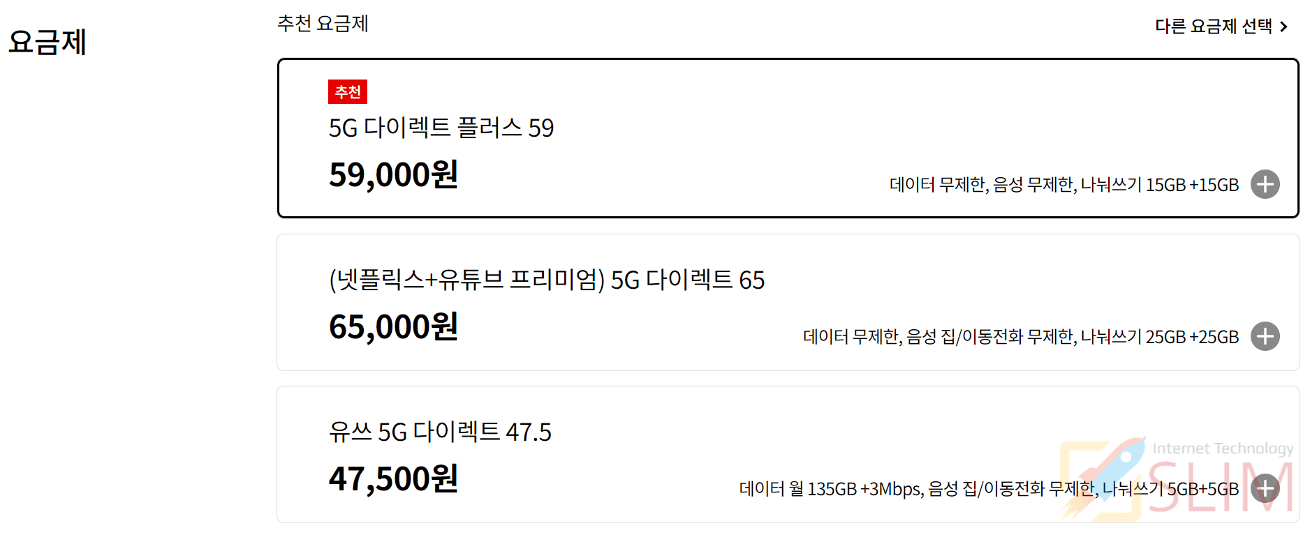 | 5G 다이렉트플러스 59 | 월 59,000원 이벤트가: 월 35,000 원 |