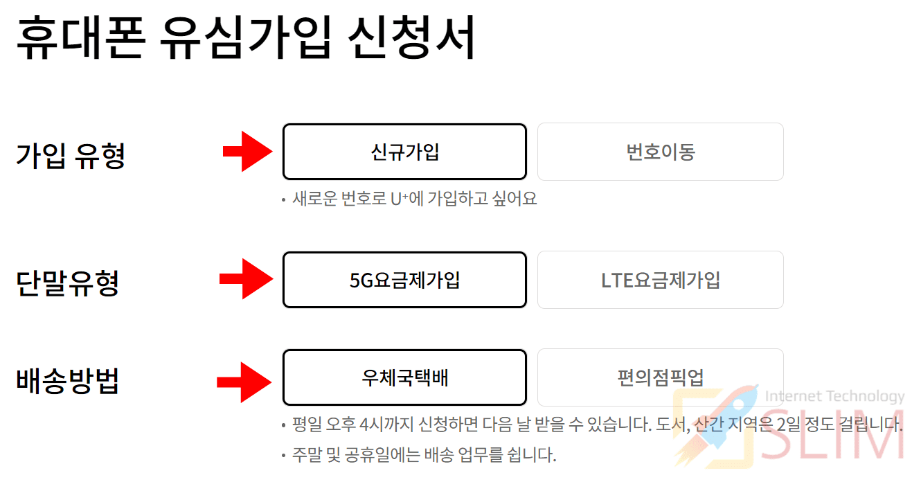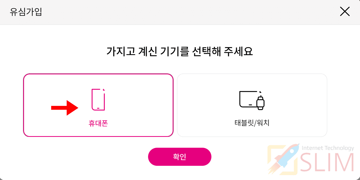 7. 단말유형에서 내가 선택한 요금제에 맞는 가입을 선택합니다.