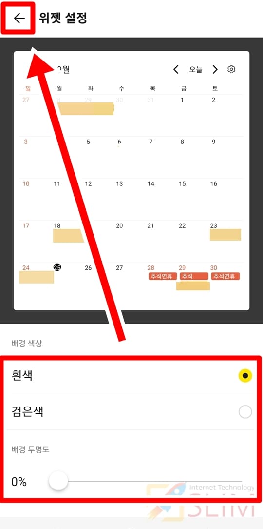 4. 갤럭시 카카오톡 캘린더 위젯 배경 색상 및 투명도 변경 방법