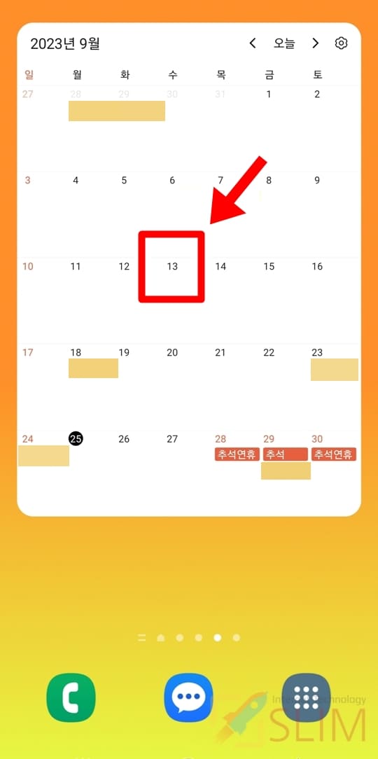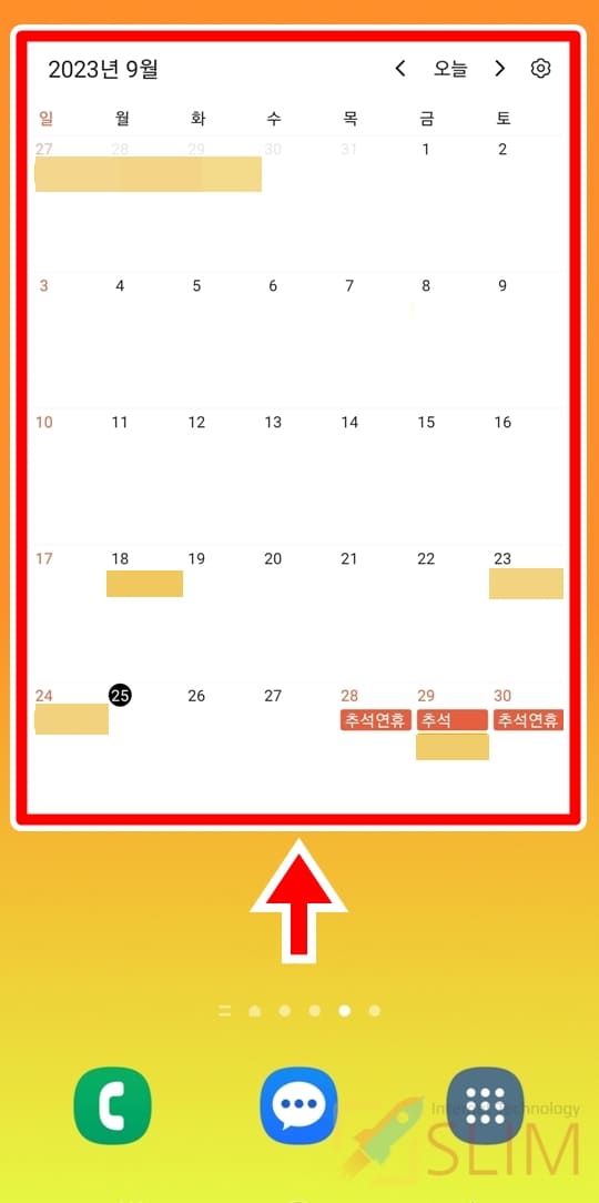 1. 갤럭시 카카오톡 캘린더 위젯을 한번 터치합니다.
