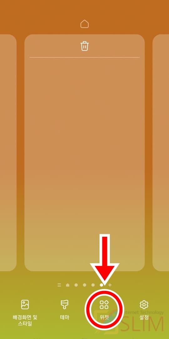 2. 설정 화면이 표시되면 하단 위젯을 클릭합니다.