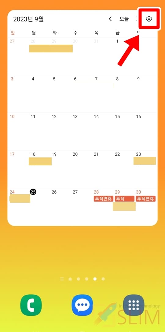 1. 카톡 캘린더 위젯 우측 상단의 설정 버튼을 클릭합니다.