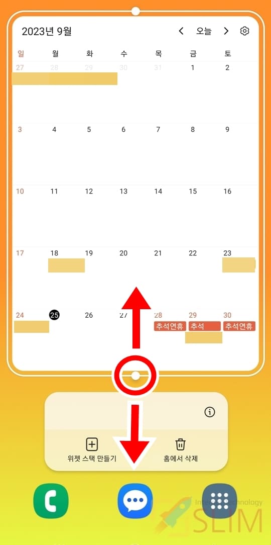 1. 카카오톡 캘린더 위젯을 길게 누릅니다.