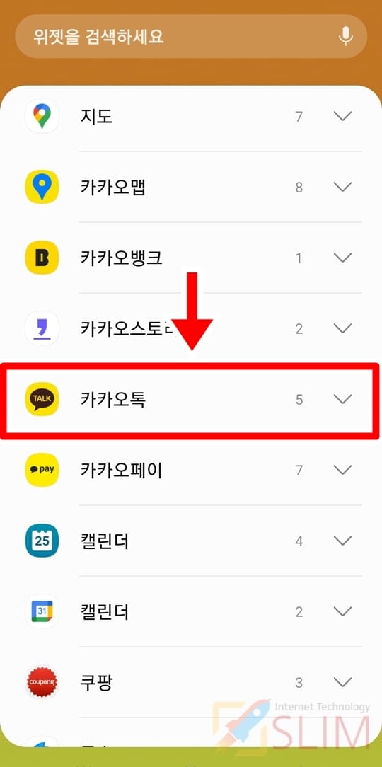 3. 위젯 앱 목록에서 카카오톡을 클릭합니다.