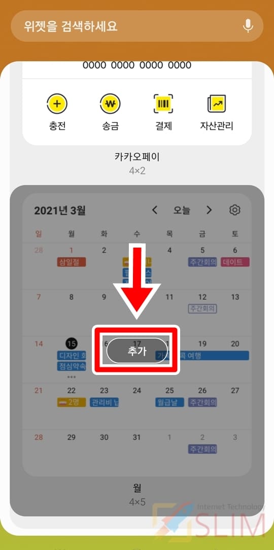 1. 갤럭시 카카오톡 캘린더 위젯을 길게 누릅니다.