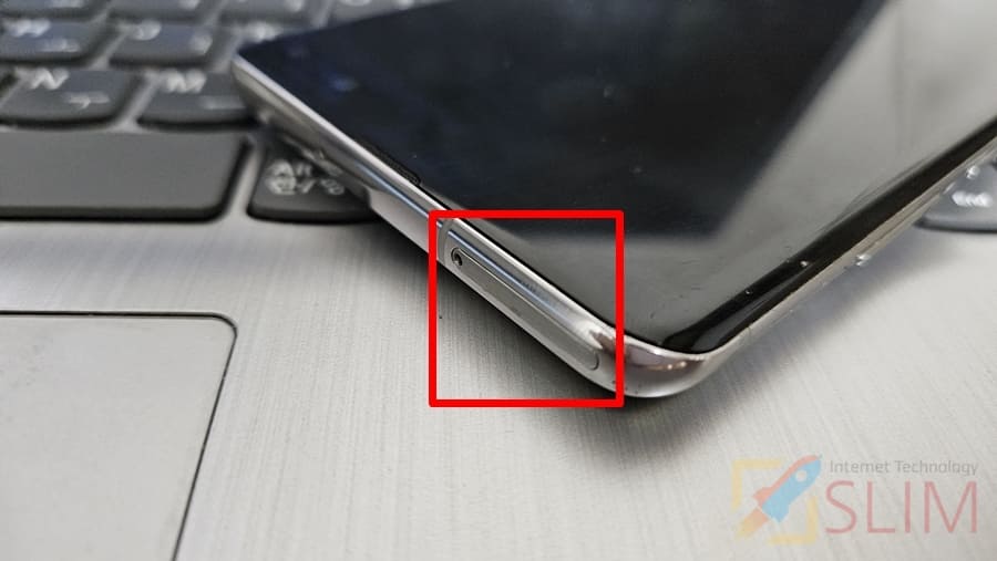 보통 스마트폰의 상단이나 측면에 유심 트레이를 확인할 수 있습니다. 위 사진처럼 동그란 구멍과 함께있는 트레이를 찾아주시면 되는데요. 동그란 구멍만 있는 마이크 단자와 달리 유심트레이는 동그란 구멍과 트레이 홈이 파여 있으니 혼동하지 않게 주의하세요.