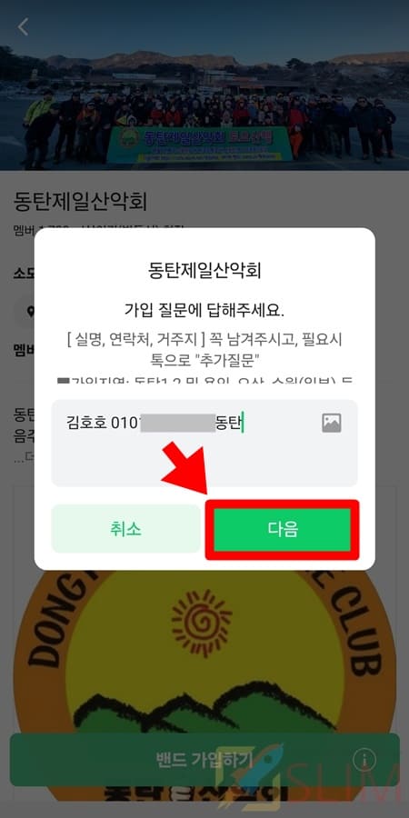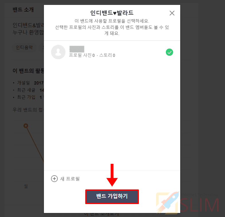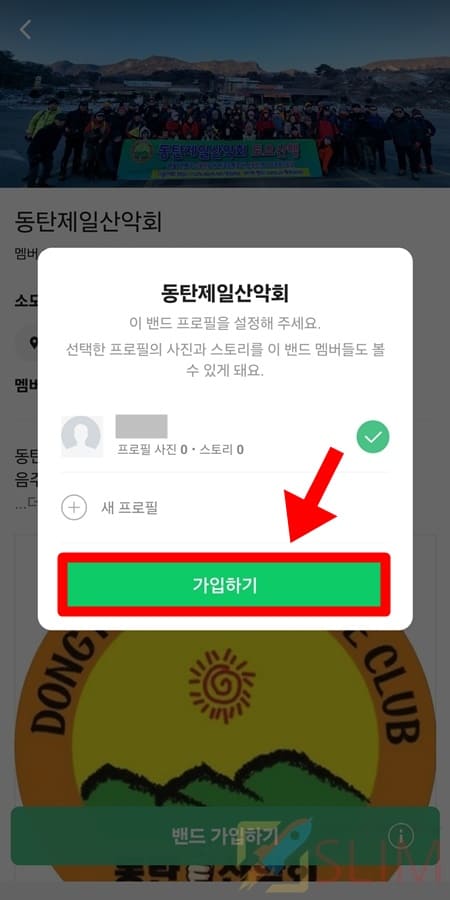 12. 가입시 사용되는 프로필을 확인하고 밴드 가입하기를 클릭합니다.