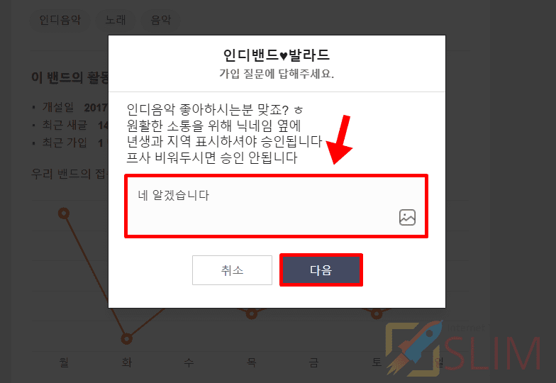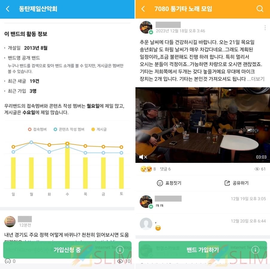 13. 밴드 모임에 가입되면 인사와 함께 활동하시면 됩니다.
