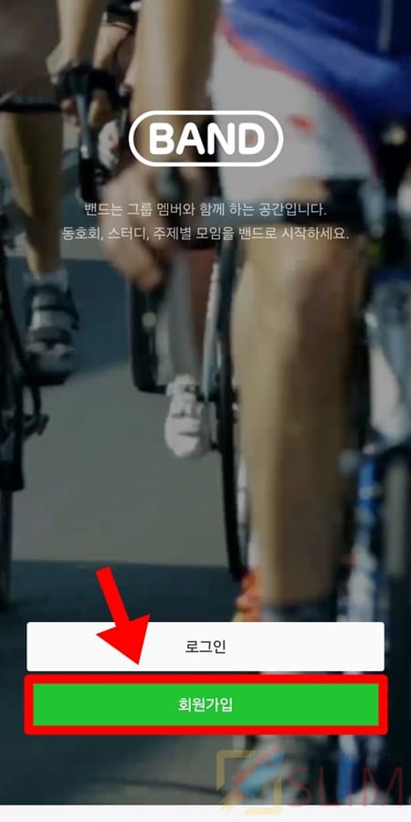 2. 밴드 앱을 실행하고 회원가입을 클릭합니다.