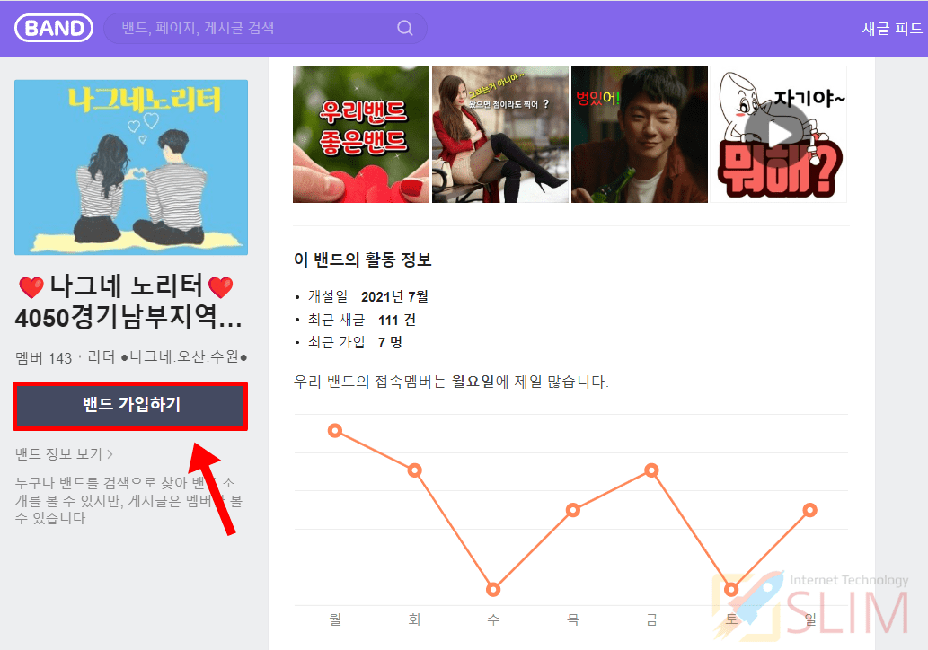 여기까지 IT슬림에서는 밴드 가입하는 방법 2가지를 소개드렸습니다. 이렇듯 PC나 모바일에서도 편리하게 네이버 밴드를 가입 후 모임까지 찾아서 가입신청을 넣을 수 있는데요. 생각보다 많은 밴드 모임이 만들어져 있기에 졸업한 초/중/고/대학교를 검색하셔도 동창회를 쉽게 찾아 가입할 수 있을 것입니다. 다만 멤버수가 너무 적거나 관리가 되지 않는 밴드 모임은 가입을 피하시는 것을 권장드리고 활발한 곳 위주로 골라서 가입신청을 넣어보시는 것을 추천드립니다. 많은 도움되셨길 바랍니다. 감사합니다.