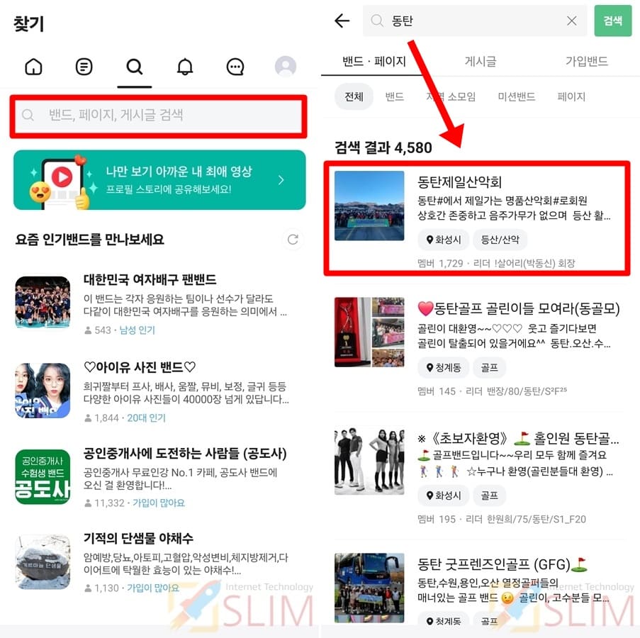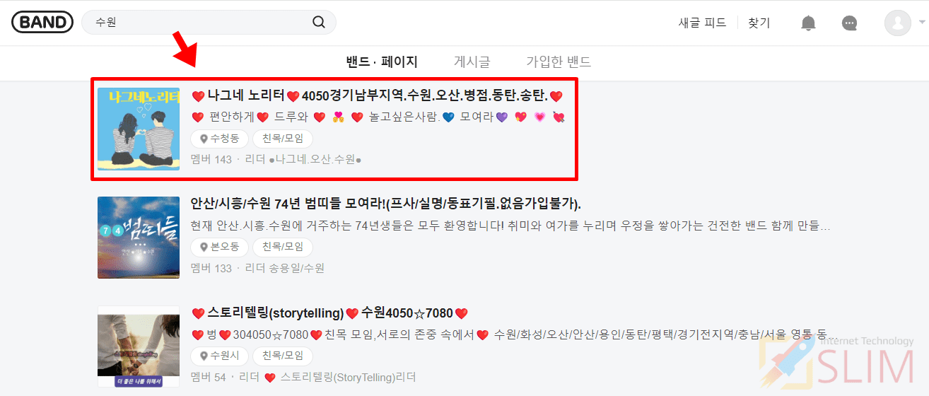 9. 가입하고 싶은 밴드를 검색 후 클릭합니다.