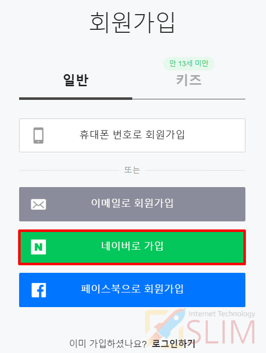3. 네이버로 가입을 선택하고 로그인합니다.