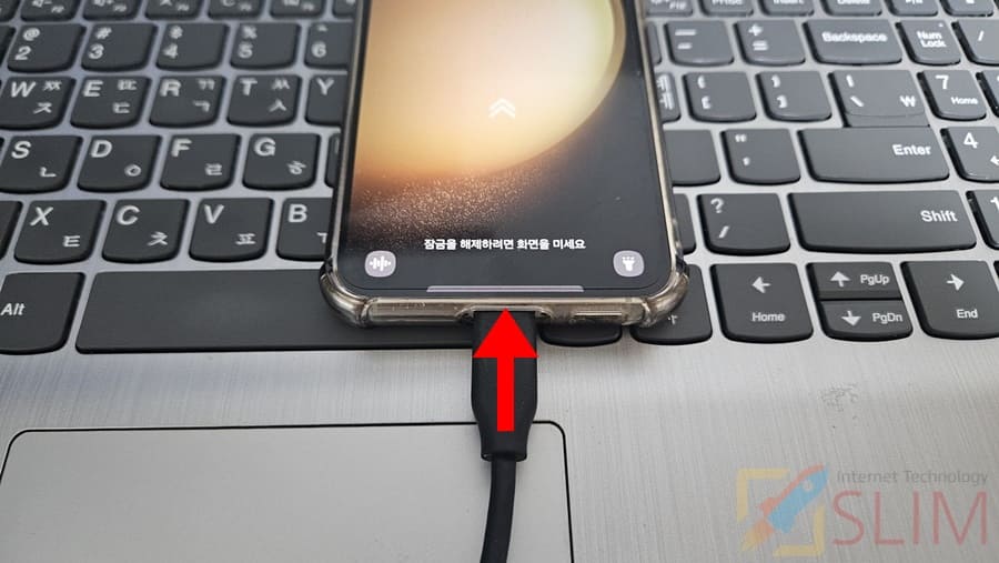 1. PC와 갤럭시를 USB 케이블로 연결합니다.