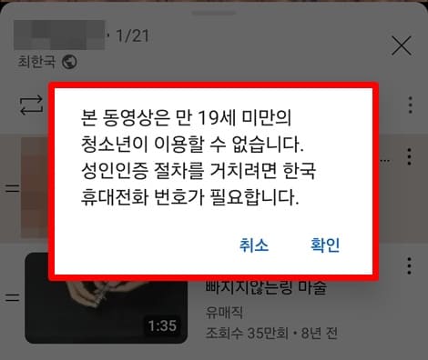 참고로 PC에서 성인인증을 진행할 경우 먹통이 되거나 인증이 적용되지 않는 오류가 많이 발생하므로 모바일 유튜브 앱을 실행 후 성인인증을 진행하는 것을 추천드립니다.