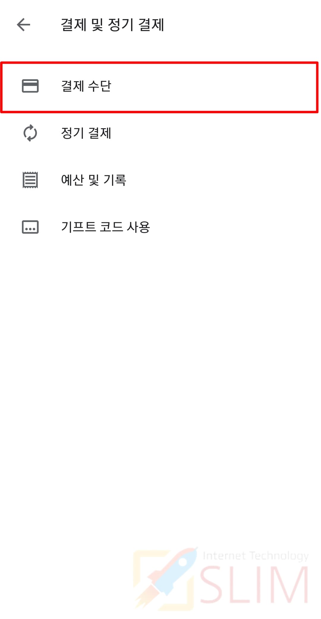 1. Google Play 결제 화면에서 결제수단 정보를 누릅니다.