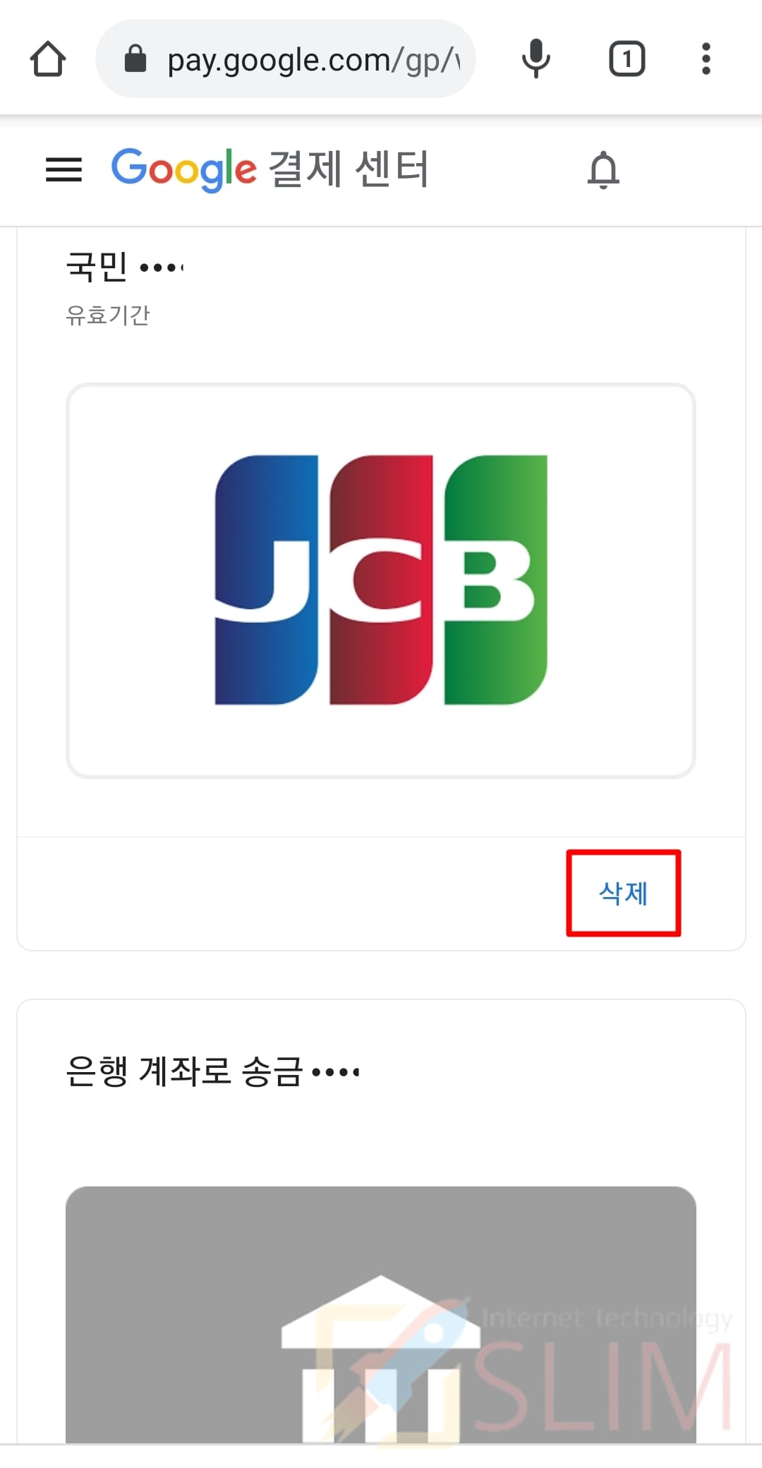 8. 삭제를 다시 누르면 결제수단 정보가 사라집니다.