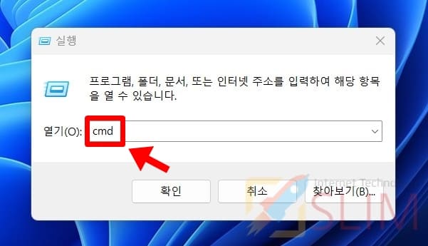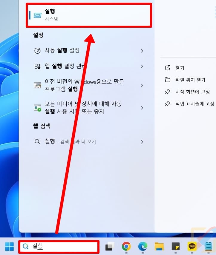 1. PC 작업표시줄 검색창에서 실행을 입력합니다.