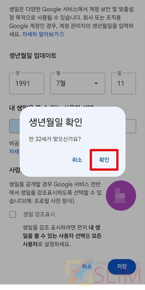 5. 변경하고 싶은 생년월일을 입력합니다.