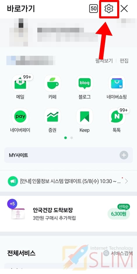 2. 우측 상단의 톱니바퀴 설정 버튼을 누릅니다.