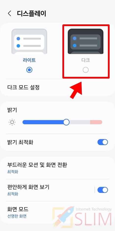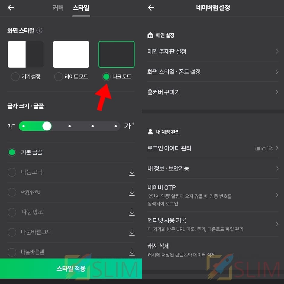 3. 화면 스타일에서 다크모드를 누릅니다.