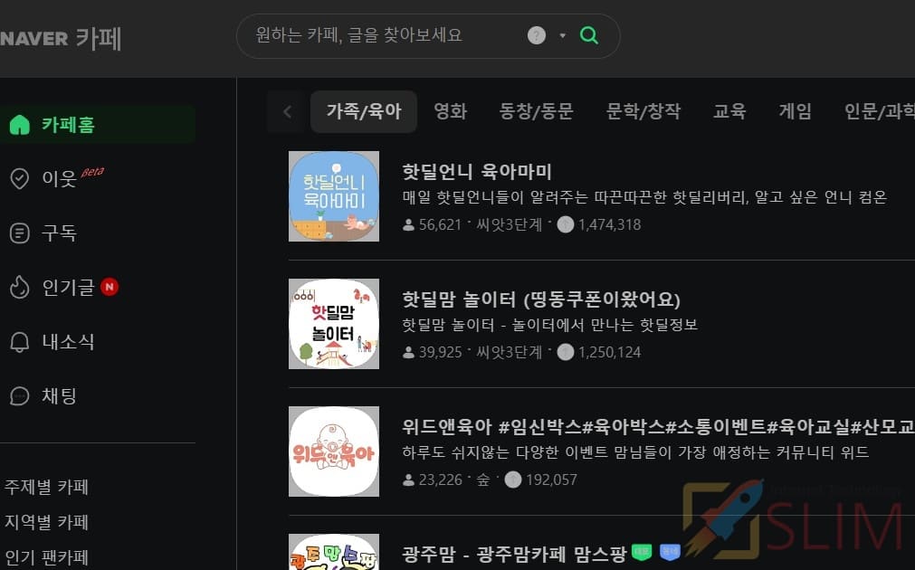 5. 네이버 카페 다크모드 설정이 완료되었습니다.