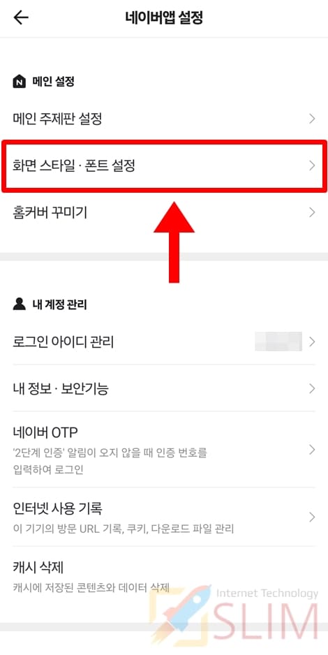 4. 화면 스타일 폰트 설정을 클릭합니다.