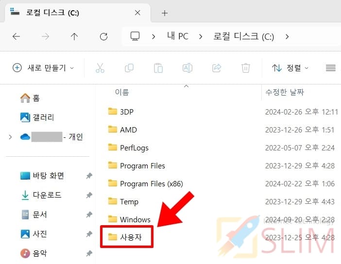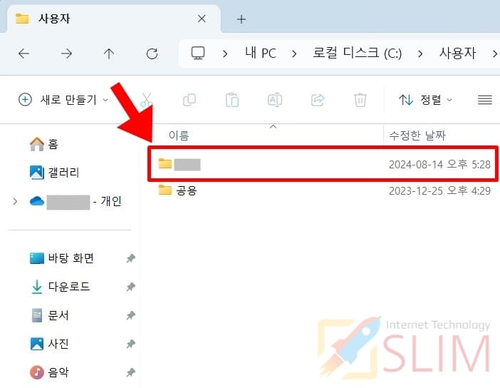 4. PC에 설정된 이름 폴더를 클릭합니다.