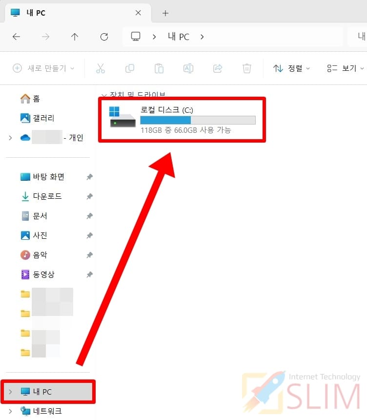 2. 좌측에서 내 PC > 로컬디스크(C:)를 클릭합니다.