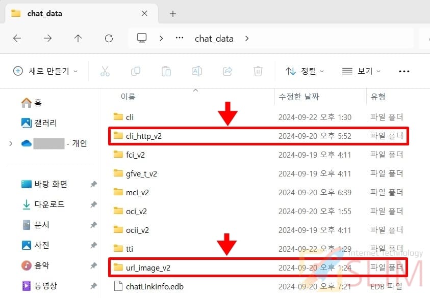 위 두 폴더는 PC 카카오톡에서 주고 받은 링크 정보나 링크 포함 이미지 파일을 저장하는 폴더이기에 삭제하여도 사용에 전혀 지장이 없습니다.