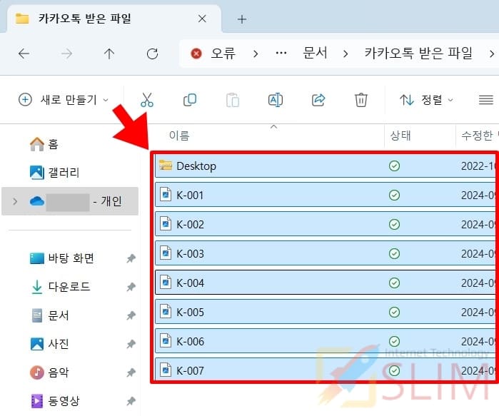 4. 불필요한 PC 카톡 다운로드 파일을 모두 삭제합니다.