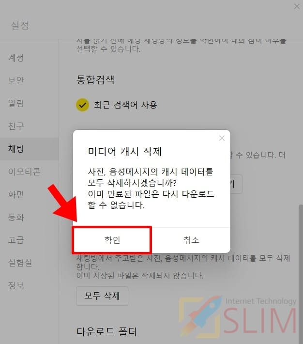 6. PC 카카오톡 캐시 데이터가 모두 삭제됩니다.